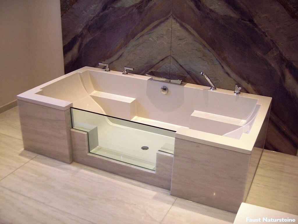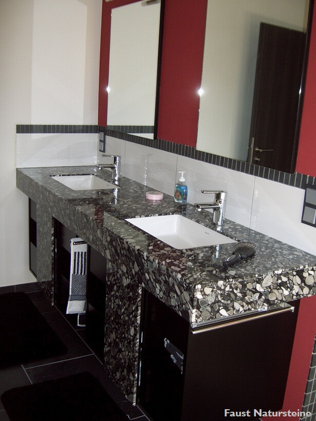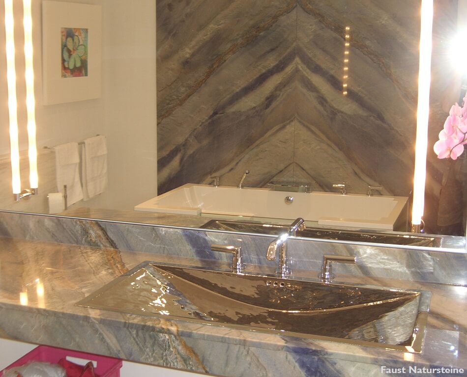 Die Verwendung von Naturstein im Bad ist längst kein Luxus mehr. Insbesondere für Waschtische, Duschrückwände und Wannenverkleidungen bietet der Naturstein ein breites Spektrum an Sorten, Varietäten, Farben, Maserungen und Oberflächen, die sich hervorragend mit Porzellan, Keramik oder Holz kombinieren lassen.