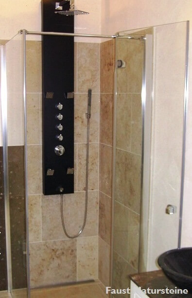 Der Wunsch, barrierefrei im Bad zu duschen, rückt bei der Badplanung immer stärker in den Mittelpunkt. Eine bodenebene, begehbare Dusche ist bei der Altbausanierung oder der Neuplanung eines Bades immer die optimale Lösung. Rutschsicher auf einer großformatigen Duschtasse aus Naturstein zu stehen, bietet Komfort und Sicherheit und somit langfristig eine bequeme und selbständige Nutzung. Mit Naturstein können Bodenbelag, Duschtasse, Wandverkleidung und Waschtisch sowohl einheitlich gestaltet, als auch mit verschiedenen Materialien harmonisch kombiniert werden.