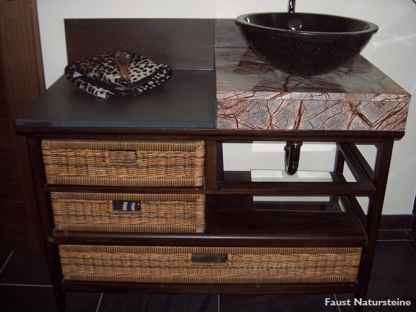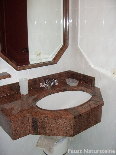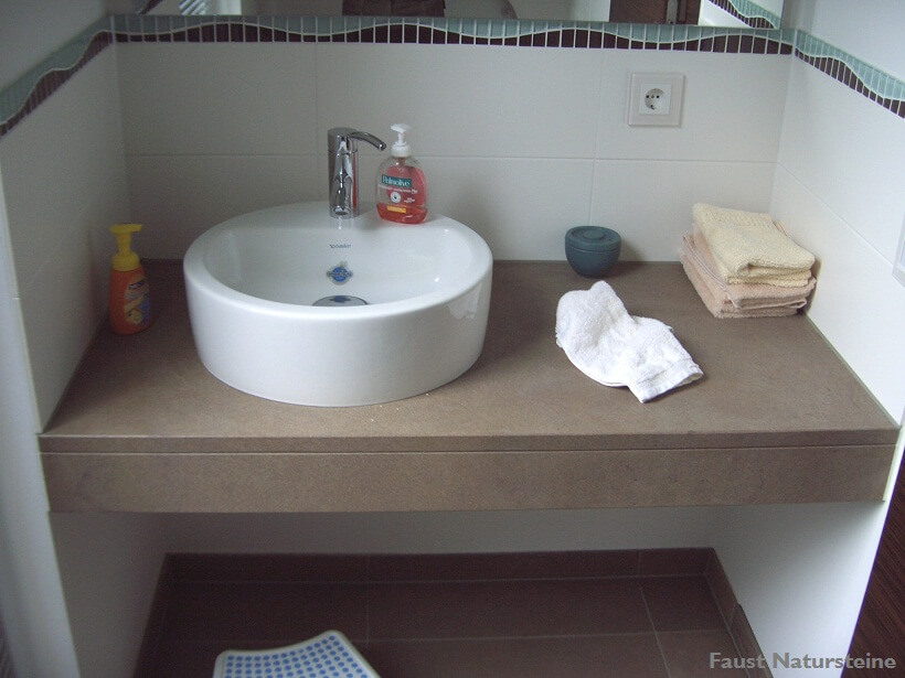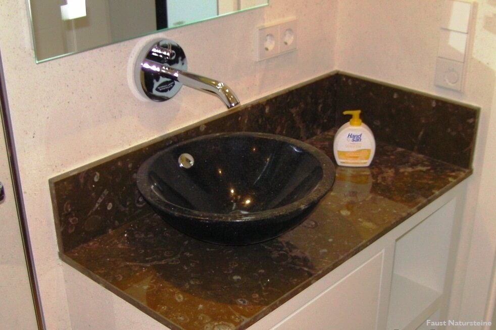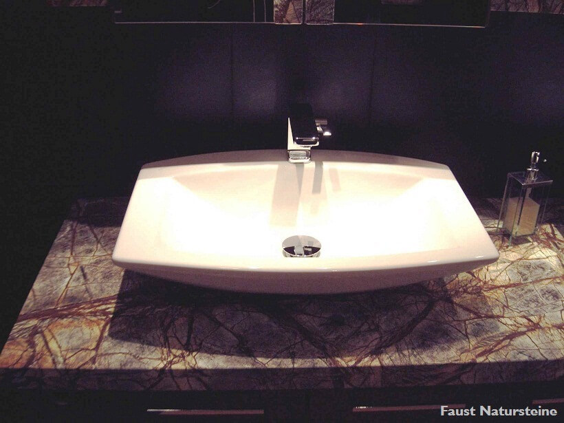 Waschtische aus Naturstein sind bei richtiger Pflege und Imprägnierung nahezu unempfindlich gegen Ablagerungen, denn die harte, geschlossene Oberfläche bietet Bakterien kaum Halt.